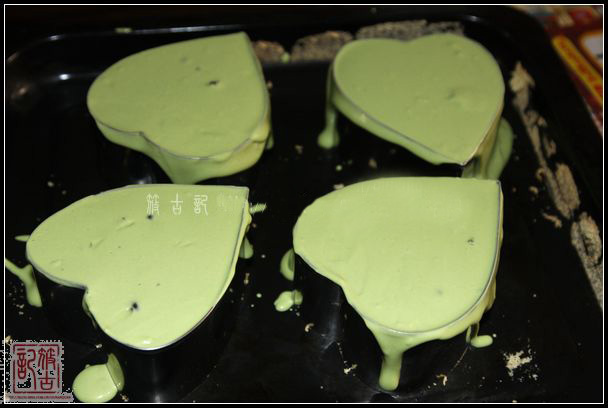 5.將做好的芝士糊倒入模子,抹平,冷藏4小時以上,脫模。拼成四葉草形狀,表面撒防潮抹茶。順德城市網(wǎng)綜合