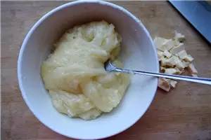 ③趁熱加入黃油,充分拌勻,改保鮮膜冷卻備用;