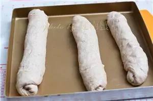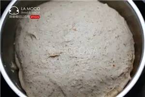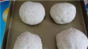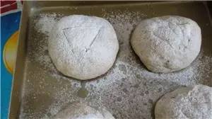 ⑨再次發(fā)酵,至明顯變大后篩上全麥粉;