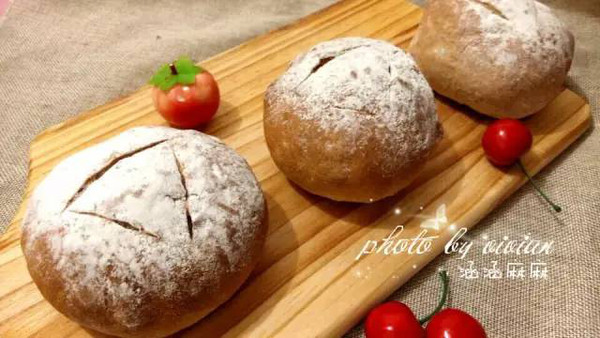 ?切開的樣子; ?放涼后密封常溫密封保存,三四天都是軟乎的哦 小貼士 ⒈可可粉換成等量的抹茶粉就是抹茶軟歐了; ⒉這個方子的糖量已經(jīng)被我減到最低了,就不要再減了哦~ 中種蜜豆軟歐包 遼南蟹 介紹 以前老是覺得中種很麻煩,其實做了之后才發(fā)現(xiàn),其實中種很簡單,只要利用自己的碎片時間把中種做好就好了,一點也不費事。相對于直接面包,中種面包的口感更好,也更耐老化,一嘗試就喜歡上中種了。 材料 中種面團(tuán) 高粉210克 鹽2克 水120克 酵母2克 主面團(tuán) 高粉30克 黑麥粉60克 水95克 鹽2克 細(xì)糖25克 酵母1克 無鹽黃油25克 做法 ①將中種面團(tuán)材料在盆中和成面團(tuán),這里和成團(tuán)就好了,不必費力揉它,放在冰箱中冷藏發(fā)酵17小時以上。最長不能超過72小時。 ②好的面團(tuán)撕開內(nèi)部充滿汽泡。 ③主面團(tuán)材料除黃油外全部加入面包機桶中,將中種面團(tuán)撕碎,一同放入,啟動面包機30分鐘和面程序。 ④面團(tuán)已具有很好的發(fā)展性,可以拉出膜了。 ⑤放上黃油。再次啟動一個10分鐘和面程序。 ⑥和好后啟動發(fā)面程序40分鐘,這是發(fā)好的面團(tuán)。 ⑦將面團(tuán)取出排氣。 分成三份,滾圓松弛。 ⑧準(zhǔn)備好蜜豆。 ⑨將小面團(tuán)搟開,鋪上蜜豆。邊緣處留下足夠大的空隙,這個是第一個,鋪的有些滿了。 ⑩卷起來,放在烤盤中,入烤箱進(jìn)行發(fā)酵。發(fā)酵時放一碗熱水增加溫度。 ?發(fā)好后篩上糖粉或者低粉,入烤箱180度25分鐘,出爐放涼就好了。 ?烤好的面包。 小貼士 ⒈如果不是做蜜豆包,配方中的糖可以增加用量。 ⒉此配方為基礎(chǔ)配方,可以加入其它果料,也可以將白糖換成紅糖等。 ⒊這個面包較大,所以烘烤時間較長,如果小 面包,可以減少時間。 枸杞軟歐面包 悠哈 介紹 前幾天的奶酪軟歐面包,發(fā)酵時間較長 大家都在說時間好長啊, 其實,好吃的關(guān)鍵就是在這里--長時間發(fā)酵, 今天做一款短時間的軟歐, 采用直接法,用枸杞打成漿和面, 成品的顏色非常誘人 材料 高粉280克 純麩皮20克 枸杞25克 細(xì)砂糖10克, SPAN> 鹽1克 有鹽黃油10克 耐低糖即發(fā)干酵母4克 清水180克 做法 ①枸杞清洗干凈,用清水浸泡10-20分鐘,用料理機打成漿 ②準(zhǔn)備所有的材料 ③除黃油外的材料全部放入攪拌缸中,用一根筷子將面團(tuán)攪拌幾下 ④用1檔攪拌一分鐘,面團(tuán)成團(tuán) ⑤再用2檔攪拌5分鐘,面團(tuán)已經(jīng)出筋性 ⑥放入已軟化的黃油,一定要軟化,能快速將黃油揉到面團(tuán)里 ⑦先用3檔打一分鐘,再用2檔打10分鐘,拉開面團(tuán),已經(jīng)基本打到完全狀態(tài),打碎的枸杞漿里有碎渣,會影響面團(tuán)出膜,效果已經(jīng)非常不錯,歐式面包這種狀態(tài)完全可以 ⑧收圓面團(tuán),室溫下進(jìn)行一發(fā) ⑨一個半小時,面團(tuán)發(fā)酵到位 ⑩取出面團(tuán),按壓排氣,橫豎各做一次三折疊,蓋保鮮膜醒發(fā)25分鐘 ?醒發(fā)后的面團(tuán),稍作按壓,整形成橄欖形,捏緊收口 ?面團(tuán)收口朝上,放入已篩上面粉的藤籃中 ?放入烤箱,用發(fā)酵功能,發(fā)酵40分鐘,烤箱內(nèi)壁用噴壺噴人少許水 ?發(fā)酵至滿模的面團(tuán)倒扣在烤盤上,用刀片在中間劃口 ?放入預(yù)熱200度的烤箱中,烤20分鐘,再將溫度降至150度,烤5分鐘 ?到時取出,放烤架放涼即可 ?成品圖 小貼士 面團(tuán)放入預(yù)熱到位的烤箱時,往烤箱內(nèi)壁噴少許的水,一定不要噴到玻璃門上,烤箱溫度一定要根據(jù)各自烤箱的脾氣來定 小麥胚芽軟歐包 阿姿 材料 液種 高筋面粉200g 酵母2g 細(xì)砂糖5g 水200g 燙種 高筋面粉50g 開水75g 主面團(tuán) 面包粉175g 全麥粉30g 小麥胚芽45g 酵母4g 細(xì)砂糖30g 蜂蜜10g 水75g 鹽5g 黃油30g 做法 ①提前一天將液種面團(tuán)材料混在一起 ②將混合好的面團(tuán)密封好,24-26度環(huán)境中發(fā)酵1小時候,放入冰箱冷藏12小時 ③制作面包前將開水沖入50g的高筋面粉中,迅速攪拌均勻無干粉,晾涼備用 ④制作面包前取出液種面團(tuán)回溫至室溫 ⑤將液種面團(tuán)湯種面團(tuán)和主面團(tuán)材料全部混合在一起混合揉面 ⑥揉成光滑面團(tuán)后蓋上保鮮膜和濕布發(fā)酵,發(fā)酵至45分鐘左右時像折疊杯子一樣折疊一次面團(tuán),這好后蓋上布繼續(xù)發(fā)酵 ⑦面團(tuán)發(fā)酵至兩倍大后取出排氣 ⑧排氣后分割成合適的大小滾圓靜置25分鐘 ⑨然后整成想要的形狀后放置在烤盤上發(fā)酵至兩倍大,表面篩干粉,割口,烤箱預(yù)熱至220度左右,烤15分鐘 ⑩成品 無油黑麥鄉(xiāng)村面包 涵涵麻麻 介紹 特別簡單樸實的面包,不繁瑣的步驟,出來的是香氣十足的面包!這是我爸爸點名要吃的,趕緊給他做了。 你沒有看錯哦,是黑麥哦,現(xiàn)在不就倡導(dǎo)營養(yǎng)健康嗎?我相信這款面包絕對符合哦! 材料 高筋面粉200克 黑麥粉50克 水125克 酵母3克 鹽3克 細(xì)砂糖20克 做法 ①準(zhǔn)備好材料,稱重備用。 ②所有材料放入面包機揉至擴展?fàn)顟B(tài)后醒發(fā)至兩倍大 ③發(fā)酵好后取出排氣,分割成4份。 ④滾圓后放入烤盤 ⑤放入烤箱,打開發(fā)酵功能,38度50分鐘,我用的是忠臣Z6,自帶蒸汽發(fā)酵,無需另放杯熱水。 ⑥烤箱預(yù)熱200度,在面團(tuán)上面噴些水,撒些面粉,用鋒利的刀劃3道,形成三角形 ⑦烤箱中層,200度20分鐘表面金黃色即可 ⑧剛出爐,吃了