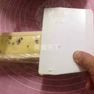 9、用保鮮膜包裹慢慢整形成長(zhǎng)條狀