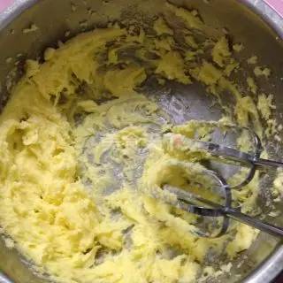 5、分2-3次加入蛋液打至融合(不要一次加入以免油水分離)