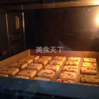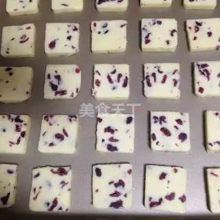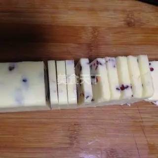 12、將凍好的面團(tuán)從冰箱中取出,切厚度約0.5cm的片,烤箱預(yù)熱180度