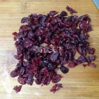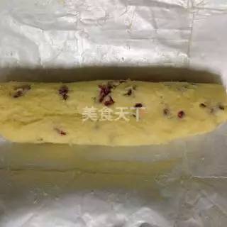 低筋面粉220克、玉米淀粉10克、黃油150克、糖粉90克、蔓越莓干60克、雞蛋1個(gè)