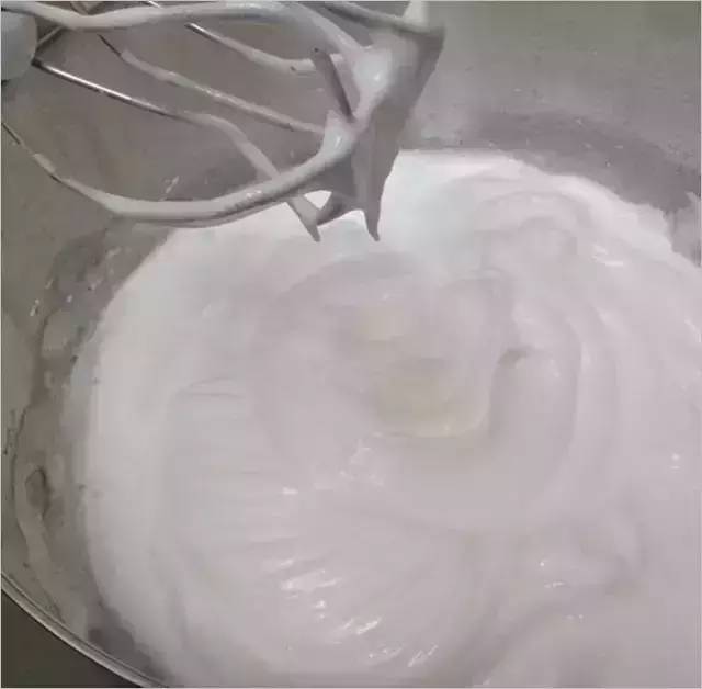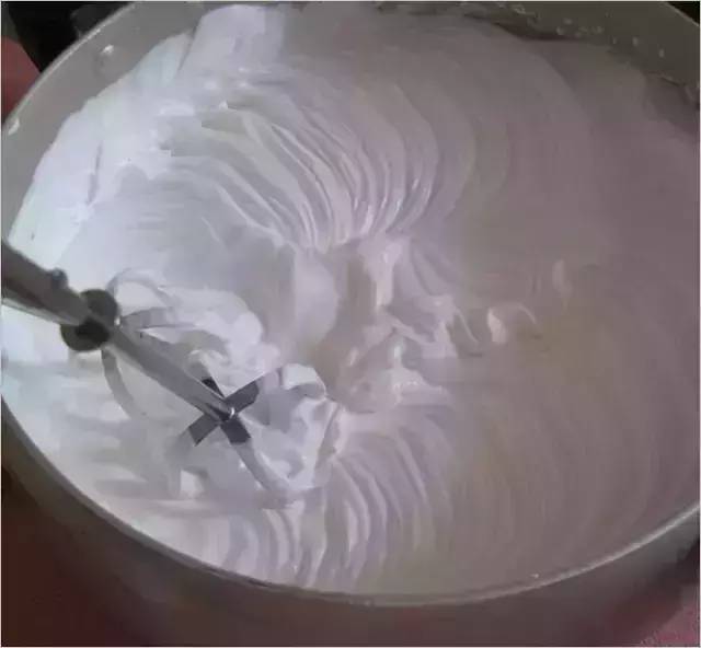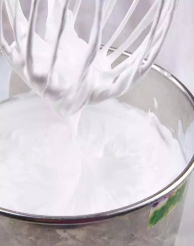2、將鮮奶油先中速后快速打發(fā),打到鮮奶油有明顯的浪花狀出來時(shí)開始用慢速消泡一下(時(shí)間不要長否則會(huì)回稀的),注意攪打鮮奶油的攪拌球最好選鋼條間距密的,這樣打出來的鮮奶油質(zhì)量由于充氣均勻進(jìn)氣量少才會(huì)有細(xì)膩的組織,如果打好的植脂奶油在使用一段時(shí)間后出現(xiàn)回軟狀態(tài),此時(shí)只要再放入機(jī)器上攪打一下即可(夏天就要加入新的帶冰的奶油再打)。