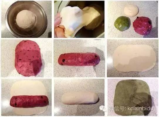 6. 其中25%的面團(tuán)加抹茶粉揉勻