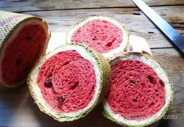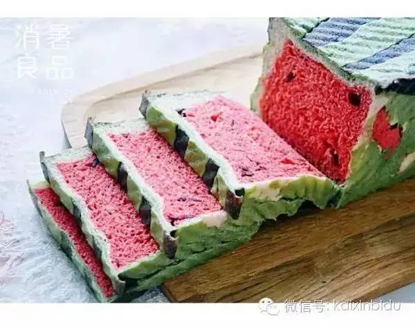 西瓜籽兒用陽光少女葡萄干(因為它是黑色的)、瓜瓤用天然色素紅曲米粉、瓜皮用抹茶粉就OK了!
