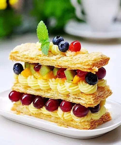 拿破侖蛋糕配上鮮果是最理想的組合,不少師傅愛在酥皮之間加上新鮮的草莓或芒果,令味道更加豐富而清甜,甚至有人會(huì)用忌廉代替吉士醬,口感同樣不俗