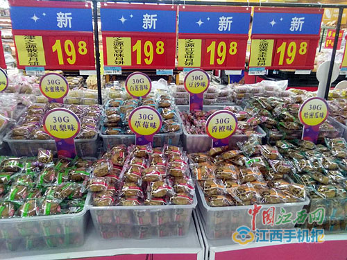 8月16日上午,記者走訪南昌八一大道附近的市場(chǎng)發(fā)現(xiàn),幾乎所有的超市都陳列著各種口味的散裝月餅。