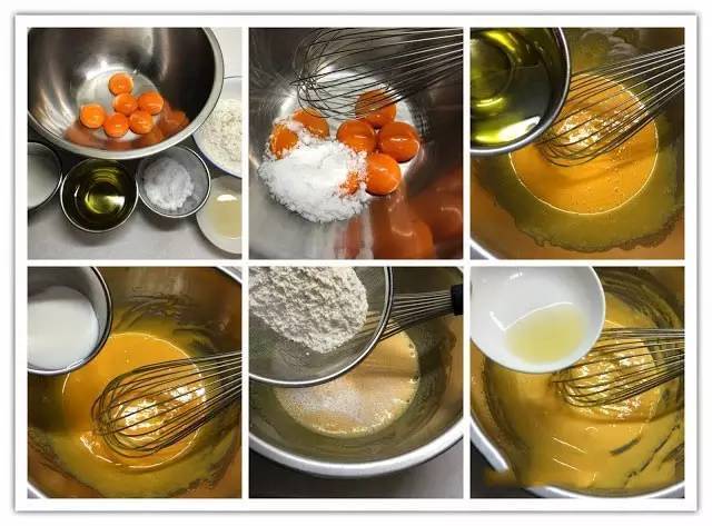 2.將液體植物油分三次加入蛋黃中拌勻。