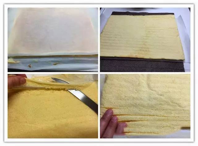 11.將蛋糕取出放在涼架上,小心撕去邊緣面的烘焙紙。