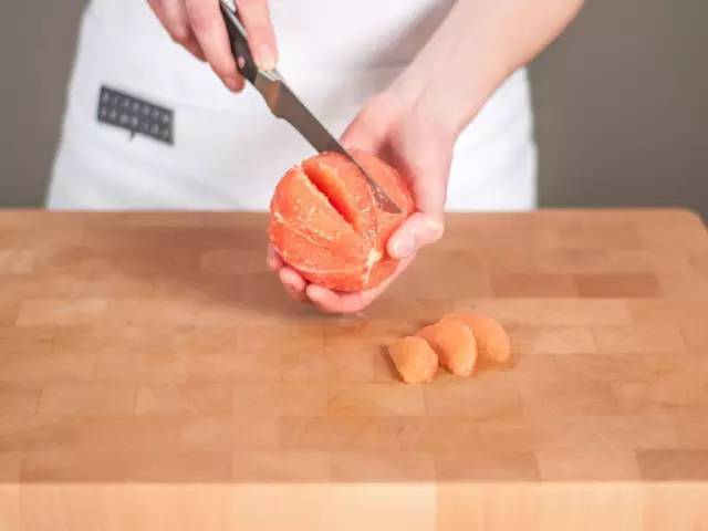 5、用一把鋒利的小刀將葡萄柚去皮并切成瓣狀。