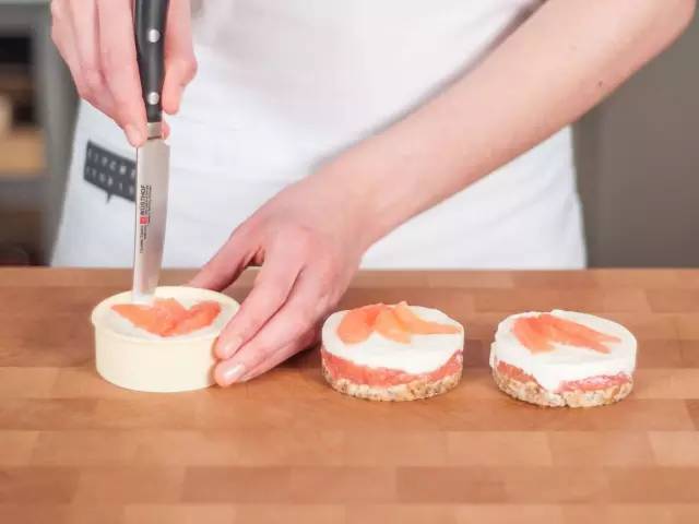 9、再放入若干葡萄柚瓣,將烤模放入冰箱冷藏約2小時。從冰箱中取出后用刀沿烤模內側轉一圈,按壓烤模底部,脫出蛋糕。然后去掉烤模底,裝盤后即可作為清爽甜品享用!