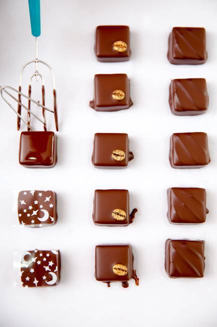 溫度:黑色巧克力淋面的溫度控制在30--35℃,白色淋面的溫度控制在65℃。