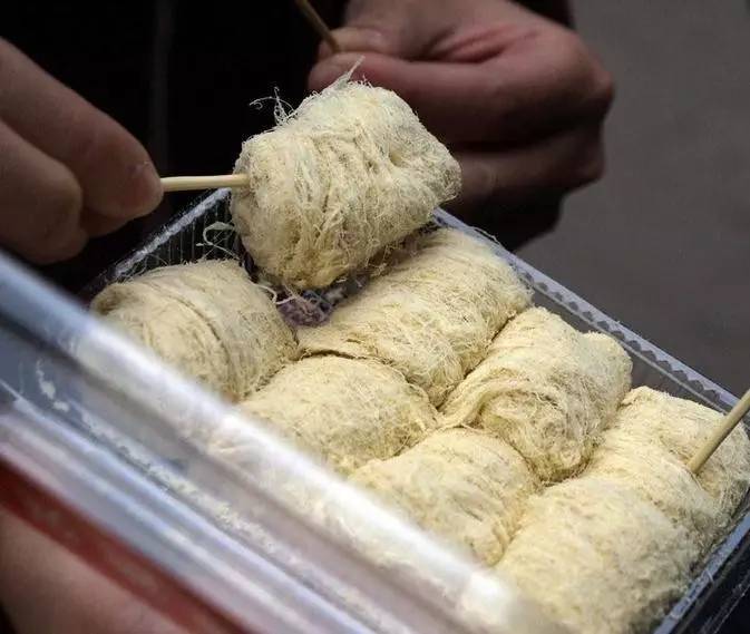 顧名思義,龍須酥最大的特點便是外層千百條潔白纖細的銀絲,形如龍須一般層層疊疊,團出一份精巧的宮廷美點,是安徽安慶市的特色甜食。奇妙造型的背后,需要點心師傅耐心地運用七道工序拉絲制成。龍須酥外表銀絲酥脆,內(nèi)里卻又綿軟清甜,吃時免不了惹得一嘴細渣,卻饒有趣味。