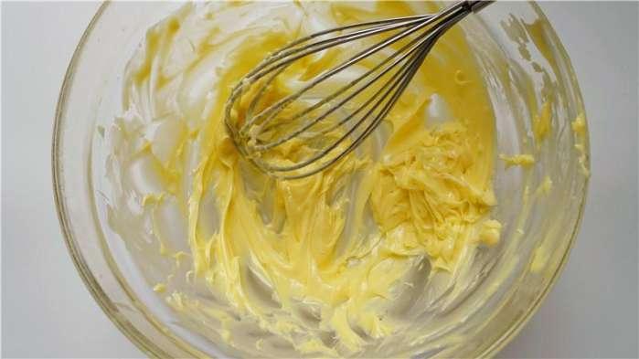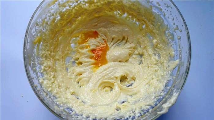 6.雞蛋打散,分次少量的加入黃油中,拌勻。