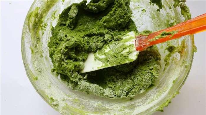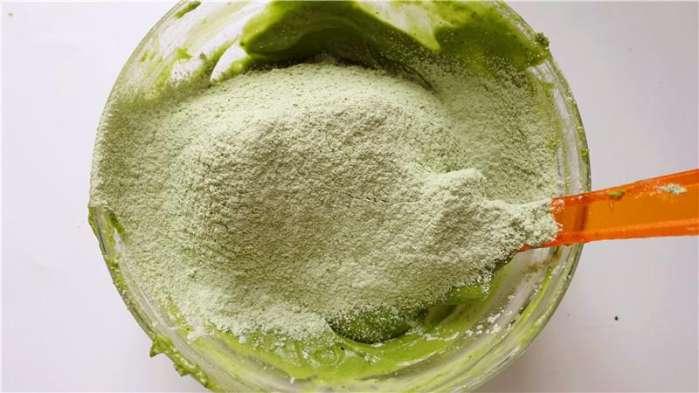 7.低粉。抹茶粉和泡打粉提前混合均勻。