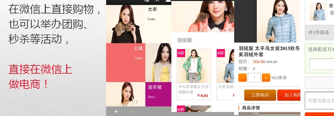 在微信上直接購(gòu)物,也可以舉辦團(tuán)購(gòu)、秒殺等活動(dòng),直接在微信上做電商!