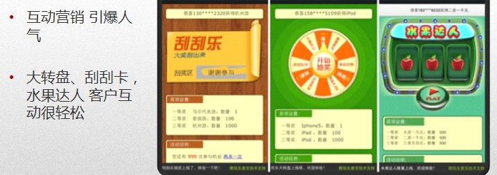 刮刮卡、抽獎(jiǎng)活動(dòng)、優(yōu)惠券、大轉(zhuǎn)盤(pán)等互動(dòng)營(yíng)銷工具,吸引粉絲關(guān)注,提升轉(zhuǎn)化率!