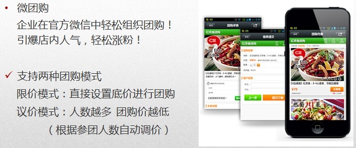 企業(yè)在官方微信中輕松組織團(tuán)購(gòu)!引爆店內(nèi)人氣,輕松漲粉!支持兩種團(tuán)購(gòu)模式: