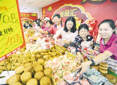 在北京一些超市,到處都能看到顧客圍著月餅售貨區(qū)在咨詢、挑選。沃爾瑪宣武門店的售貨員告訴《經(jīng)濟(jì)日報》記者:“今年的月餅銷售比去年好,一是散客更多,二是中小型團(tuán)購回暖,更重要的是價格不高,大家買得放心?!?/P>