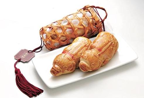 一提到“豬籠”,許多人忍不住會(huì)聯(lián)想到“浸豬籠”這種詭異可怕的舊時(shí)陋習(xí)。其實(shí),豬籠原本只是用來(lái)裝運(yùn)豬仔的圓筒形竹籠而已。那么,豬籠餅,顧名思義就是把形似小豬的餅裝在小竹籠里。它是廣東人在中秋節(jié)時(shí)送給長(zhǎng)者或小朋友的傳統(tǒng)食品,現(xiàn)在除香港以外,在其他地區(qū)都已十分少見(jiàn)?!靶∝i”做得很細(xì)致,有棱角分明的眼睛、耳朵、鼻子和尾巴,惟妙惟肖。在廣東人眼里,豬籠餅肥肥圓圓的身形,憨態(tài)可掬的表情,寓意家中養(yǎng)著大肥豬,好意頭深得人心。豬籠餅最特別之處,是它并非用盒子盛載,而是用一個(gè)塑料籠或小竹籠裝著?;\子五顏六色,有的還綁上彩帶用膠花點(diǎn)綴,是小朋友的最愛(ài),能吃又能玩。