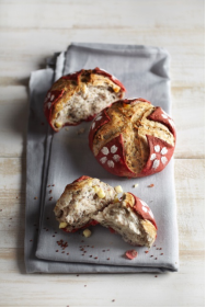 五福,是中華傳統(tǒng)對(duì)幸福的最高冀求,包含長(zhǎng)壽、富貴、康寧、好德和善終,五項(xiàng)最美好的祝愿,也就是人們常說的“五福臨門”。天地有德,潤(rùn)萬物,獲豐收。外形設(shè)計(jì)上完美表現(xiàn)了三個(gè)層次的“五”,外層妝點(diǎn)的五瓣花朵,經(jīng)由烘焙師之手,精心撒制而成。高營(yíng)養(yǎng)與柔軟的紅藜紅米酵母面包,搭配完美健康的黑白芝麻與核桃組合,每一口都是滿滿當(dāng)當(dāng)?shù)南愦夹腋!?/P>