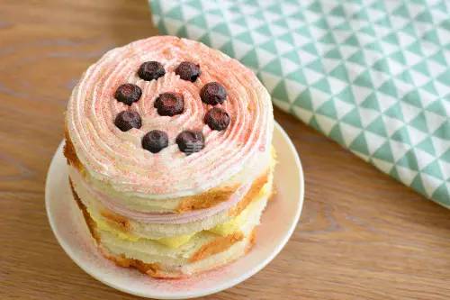 今天美胖給大家?guī)?lái)一款彩虹蛋糕,