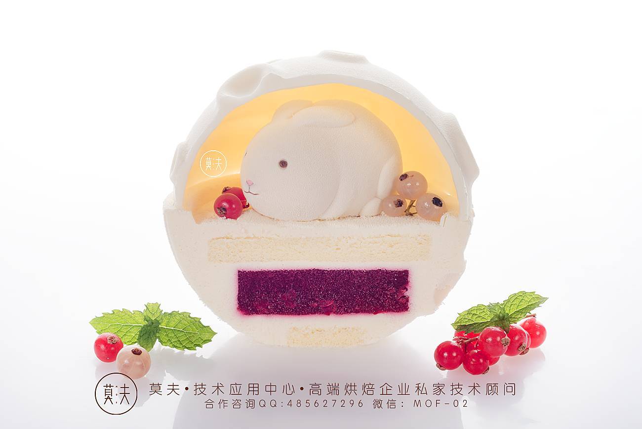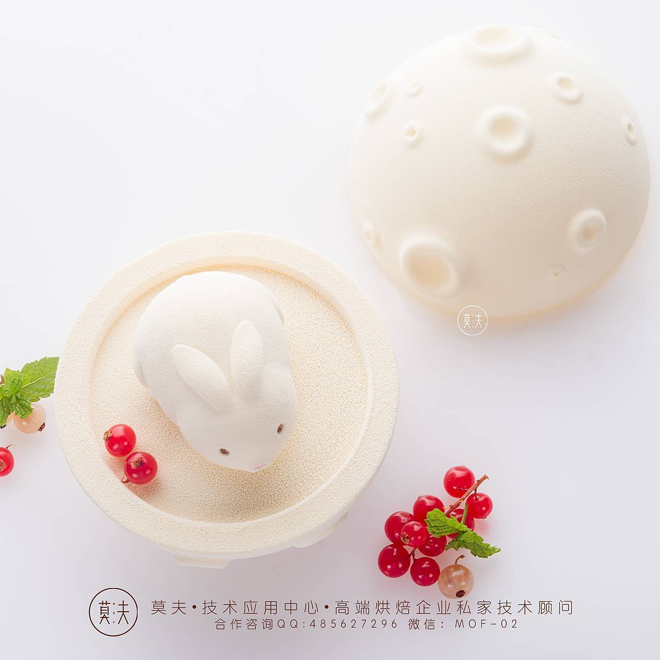 以中秋玉兔為主題的蛋糕造型,直徑15cm、高度6cm,等于6寸蛋糕的規(guī)格大小。