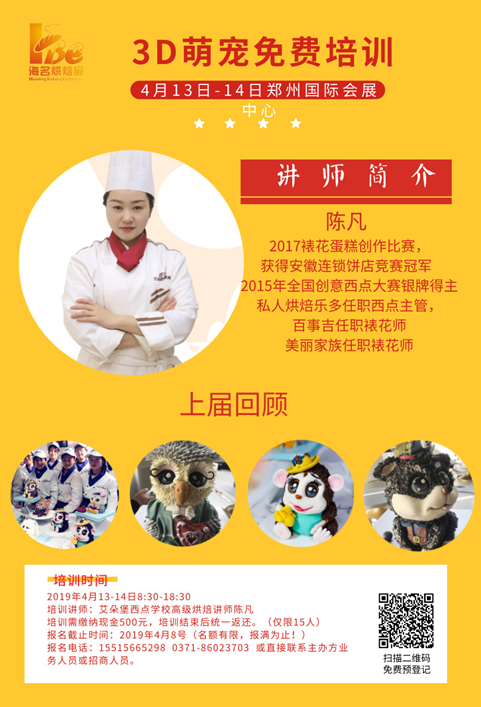 展會現(xiàn)場鄭州烘焙展攜手鄭州艾朵堡西點西餐教育舉辦的為期2天的3D萌寵制作技術(shù)教學(xué)培訓(xùn)將于 4月13日正式開始,參與報名即有機會學(xué)習(xí)最具個性3D萌寵蛋糕制作方法。