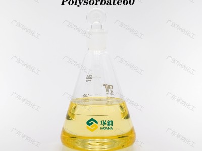 吐溫60,又名聚山梨醇酯60,常溫下為淡黃色至琥珀色油狀液體或膏體。略帶苦味,溶于水、乙醇、醋酸乙酯及甲苯,不溶于礦物油及植物油。具有乳化、潤濕、起泡等性能,屬O/W型乳化劑,HLB值14.9。