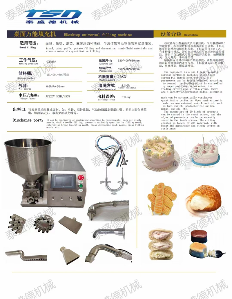 大頂配桌面型充填機一機多用,采用觸摸屏PLC控制,下料采用伺服電機。機頭采用304不銹鋼制作??梢宰W、定量灌裝、裱花等。肖經(jīng)理15290722050.