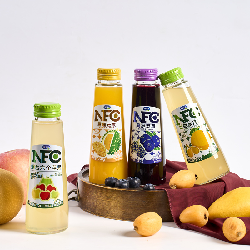 NFC果汁:專利瓶型,配料干凈,無負(fù)擔(dān),0防腐劑、0添加劑,0色素。