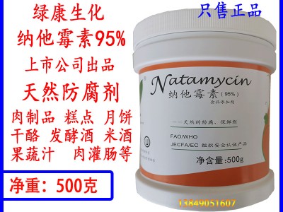 納他霉素 95%含量 500克/瓶,500克*10瓶/箱 品牌:綠康生化
